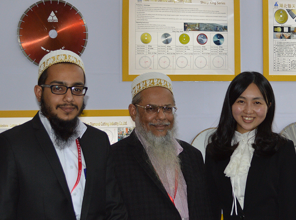 I come from a small town, Tazerbo, in Libya, and I have done diamond saw blade business in capital city Tripoli for 3 years, In the first year, without finding stable qualified supplier, I had to ask my friends in Tripoli who have stone factories here for help, and sold the saw blades to them, In 2003,I found Yintian Company in Xiamen stone fair, and I thought they are very professional, So I asked my Chinese friend to help me buy some saw blades to have test in different factories of my friends, Surprisedly, the cutting result is very good. Especially, Yintian high-grade saw blade can cut various granite and marble in different hardness with high speed and no chipping ,and its lifespan can reach 1000 ㎡.Now, my business gets better and better, and I am thinking about setting up a Yintian agent in Libya.